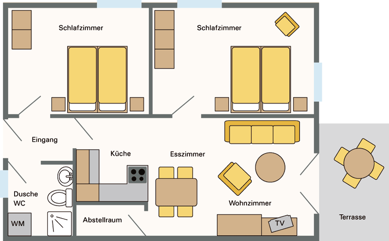 Ihre komfortabel eingerichtete 55 m² große Wohnung im Haus Sommerwind ist für zwei bis vier Personen eingerichtet und über einen separaten Eingang barrierefrei zu erreichen.